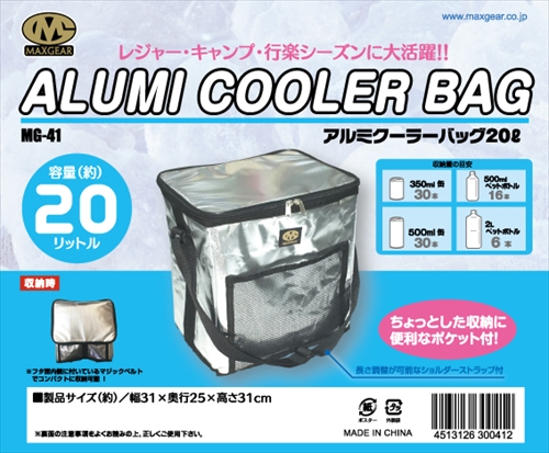 レジャー・キャンプ・行楽シーズンに大活躍!コンパクトに収納出来て便利に使える保冷バッグです。長さ調節が可能なショルダーストラップ付きで、350ml缶30本、500ml缶20本、500mlペットボトル16本、2Lペットボトル6本収納可。